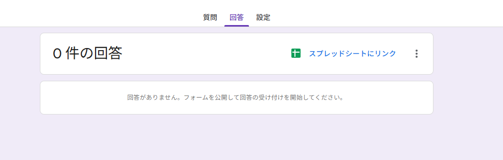 「回答」⇒「スプレッドシートにリンク」を押して、スプシと連携をしましょう。
